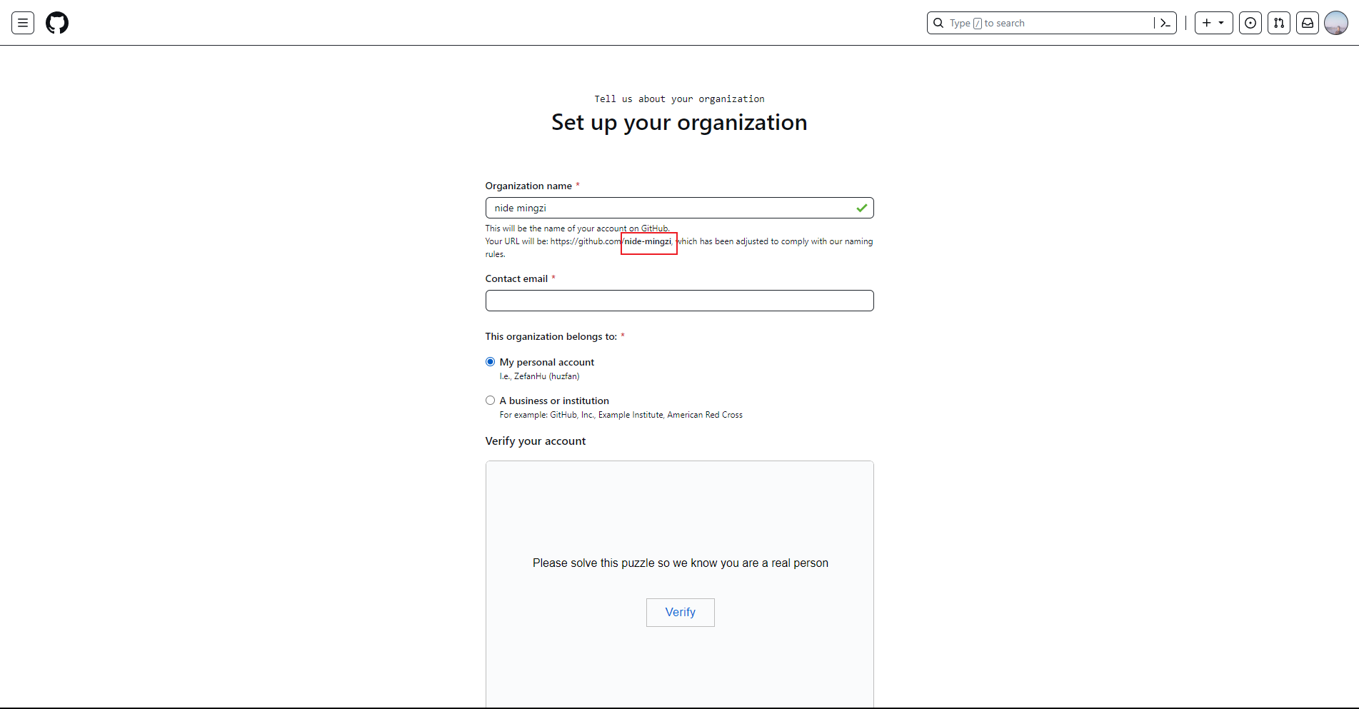 步骤 2:创建 GitHub Organization (可选但推荐)